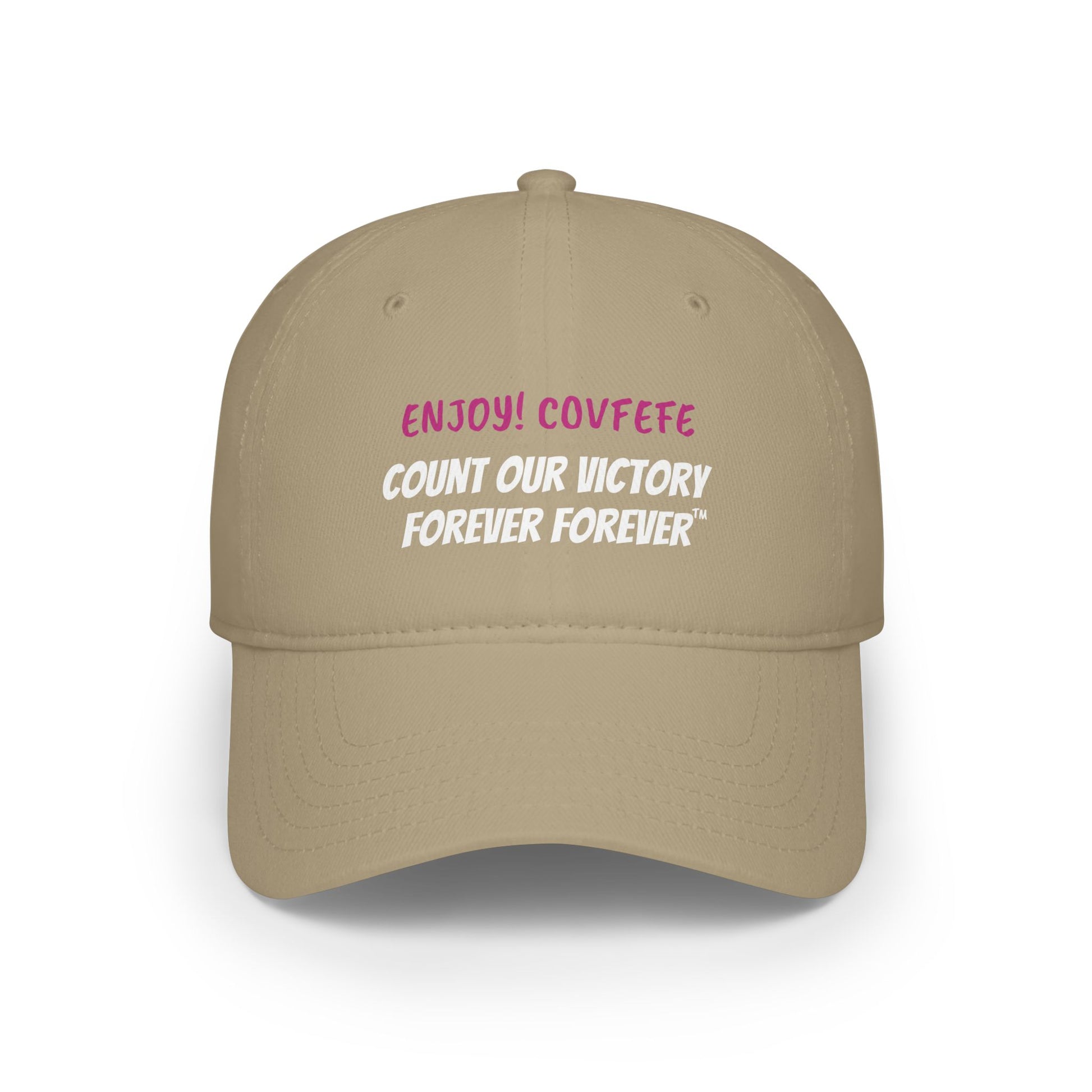 COVFEFE with ENJOY! Low Profile Baseball Cap (Khaki)